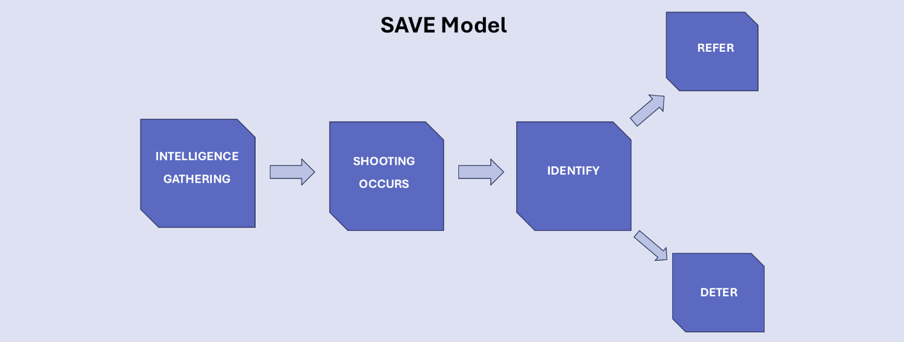 SAVE is designed to interrupt cycles of retaliatory gun violence before they spin out of control. Combining support and accountability, SAVE helps connect likely retaliators to services and deters further violence through strategic enforcement.